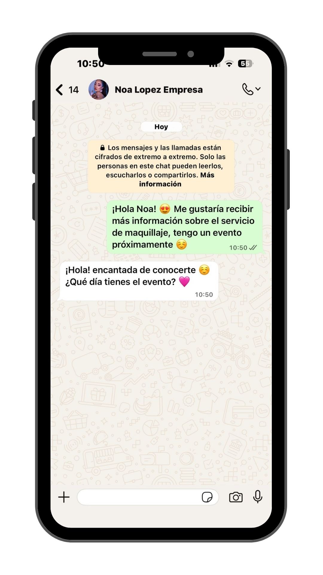 Haz click en el botón para contactar conmigo personalmente. Hablaremos sobre tu evento, estilo de maquillaje, fecha, lugar y hora.